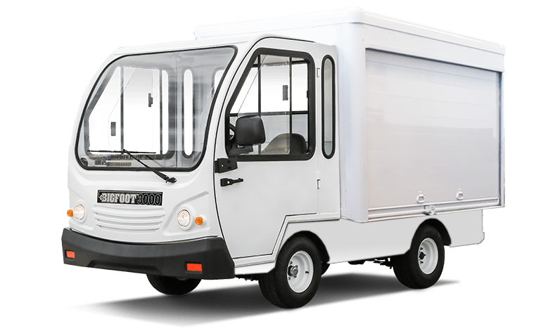 Vehículo utilitario eléctrico, ideal para uso en exteriores y diseñado especialmente para reparto en calle.